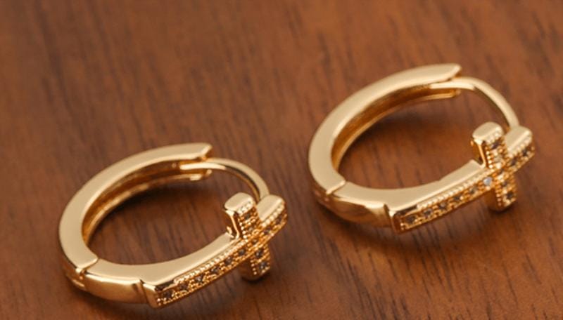 Add a touch of divine elegance to any outfit with these stunning hoop cross earrings.